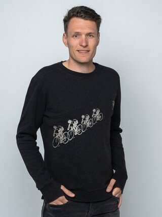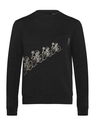Geïnspireerd door de kracht en snelheid van een voorbijrazend peloton. Het ontwerp belichaamt de essentie van het peloton, doorzettingsvermogen en een ongeëvenaarde teamgeest. Antraciet / grijs Melange jersey van 100% katoen, Gemaakt in Portugal geborduurd artwork Overdwars geplaatste strook jersey Manchetten met duimgaten Geborstelde binnenzijde voor extra draagcomfort Pre-washed voor kleurvastheid en vormbehoud Machinewas wasbaar op 30º Mag niet in de droger